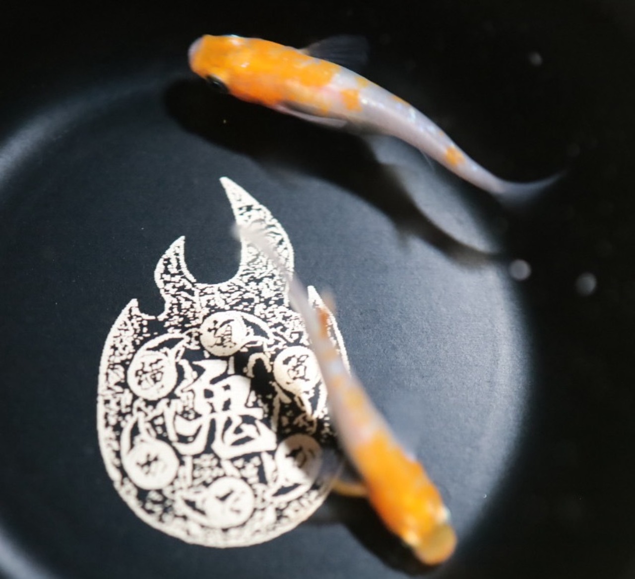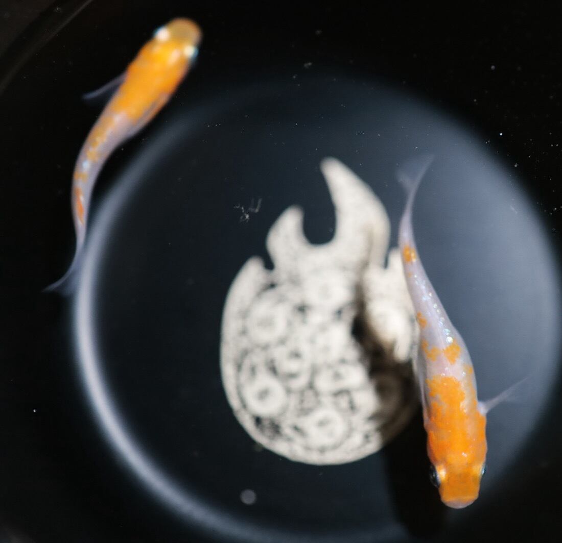 発色のいい紅白に少しだけ入る青ラメが綺麗なめだかです。